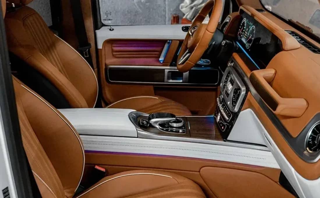 Полный комплекс внешнего и внутреннего тюнинга редкого G-Class 2025: карбоновый обвес, кожа и алькантара, детали премиум-класса.
